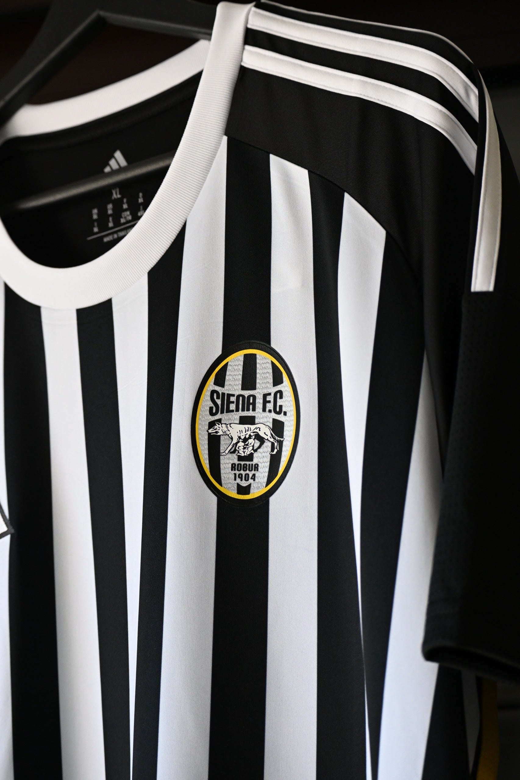 La società Siena F.C. è orgogliosa di presentare la nuova maglia gara per la stagione 2025/2026. Realizzata in collaborazione con lo sponsor tecnico Adidas, questa divisa unisce tradizione e modernità attraverso il classico motivo a strisce verticali bianconere, simbolo intramontabile del club. Il design pulito ed elegante, arricchito da dettagli in giallo e da un taglio moderno, celebra l’identità e la storia bianconera, portando in campo il carattere e l’orgoglio della città di Siena.